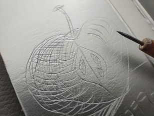 Mit der klassischen Nadel oder anderen spitzen Gegenständen wird in Tetrapack-Kartons geritzt und durch das Einfärben und Abdrucken entsteht dann ein spiegelverkehrtes Abbild - wieder und wieder. Durch das Abdrucken und Vervielfältigen sind so auch Experimente willkommen - Farben variieren oder dem geritzt-gezeichneten Bild noch etwas hinzufügen…