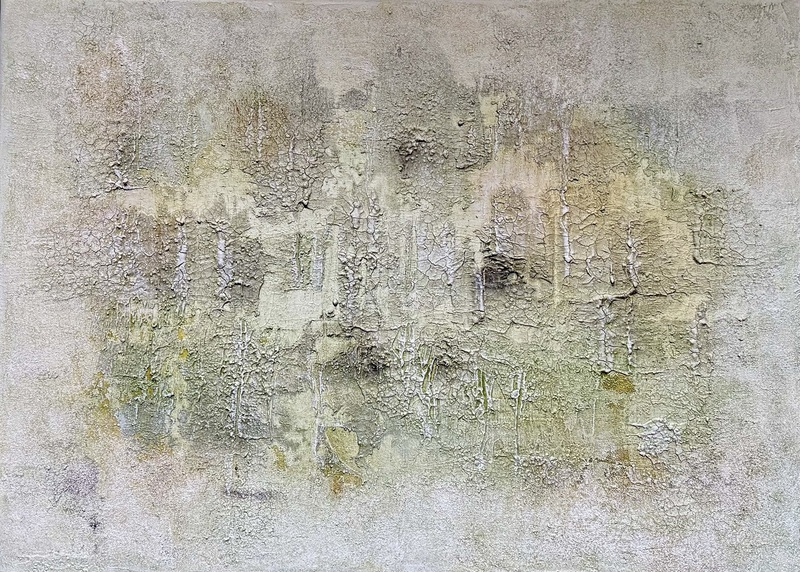 Mich inspiriert das Spiel mit den verschiedenen Materialien. Es ist immer eine Erlebnisreise. Das Spannende und oft meditative an der experimentellen Art ist der nicht genau zu planende Malprozess, der mich immer wieder herausfordert, neu zu reagieren und zu gestalten. Marmormehl anrühren und auf der Leinwand verteilen, Pigmente hineinpusten, während des Trocknungsprozesses die Rissbildung beobachten, das Bild immer wieder mit flüssiger Tusche und viel Wasser verändern, mich auf die neue Situation einlassen. In vielen Schichten entsteht nach und nach das Bild. Der Prozess ist die Reise.