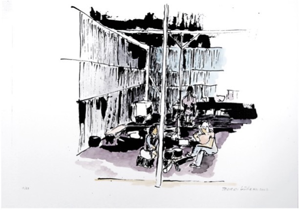 Kolorierung mit Aquarellfarben spiegeln die Stimmung vor Ort.